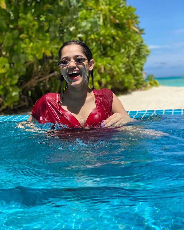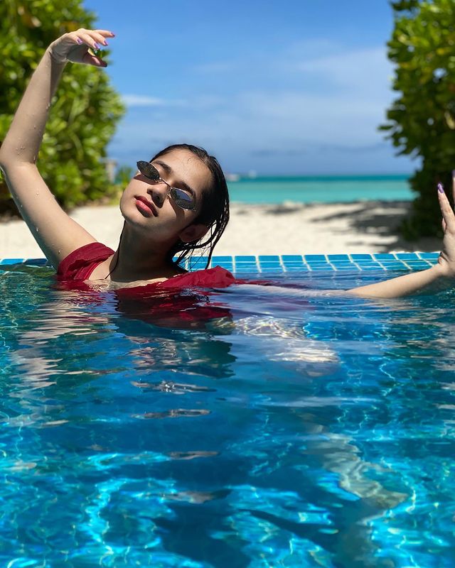 The actress is now on vacation in the Maldives. During this time, he shared numerous photos on social media. She is wearing a red bikini during this time. She is spotted in the pool having a great time. The actress can be seen swimming in the pool while wearing black sunglasses. His photographs are extremely popular among his fans. Not only that, but Jannat has been observed working and having fun in the pool during this period. She has 41.9 million Instagram followers, making her one of the most popular celebrities on the platform.