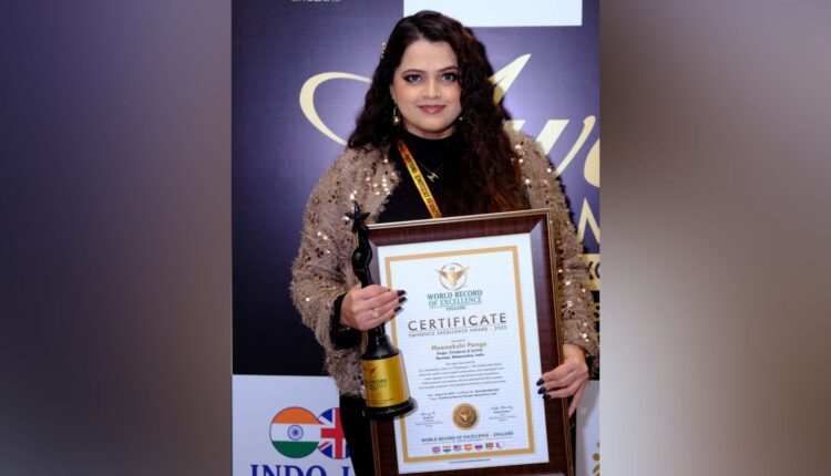 In a proud moment for the Indian music fraternity, acclaimed singer, composer, and lyricist Meenakshi Pange has been bestowed with the prestigious “Eminence Excellence Award 2025” by the World Record of Excellence in England. The award celebrates her outstanding contribution to music and her ability to create melodies that transcend borders.